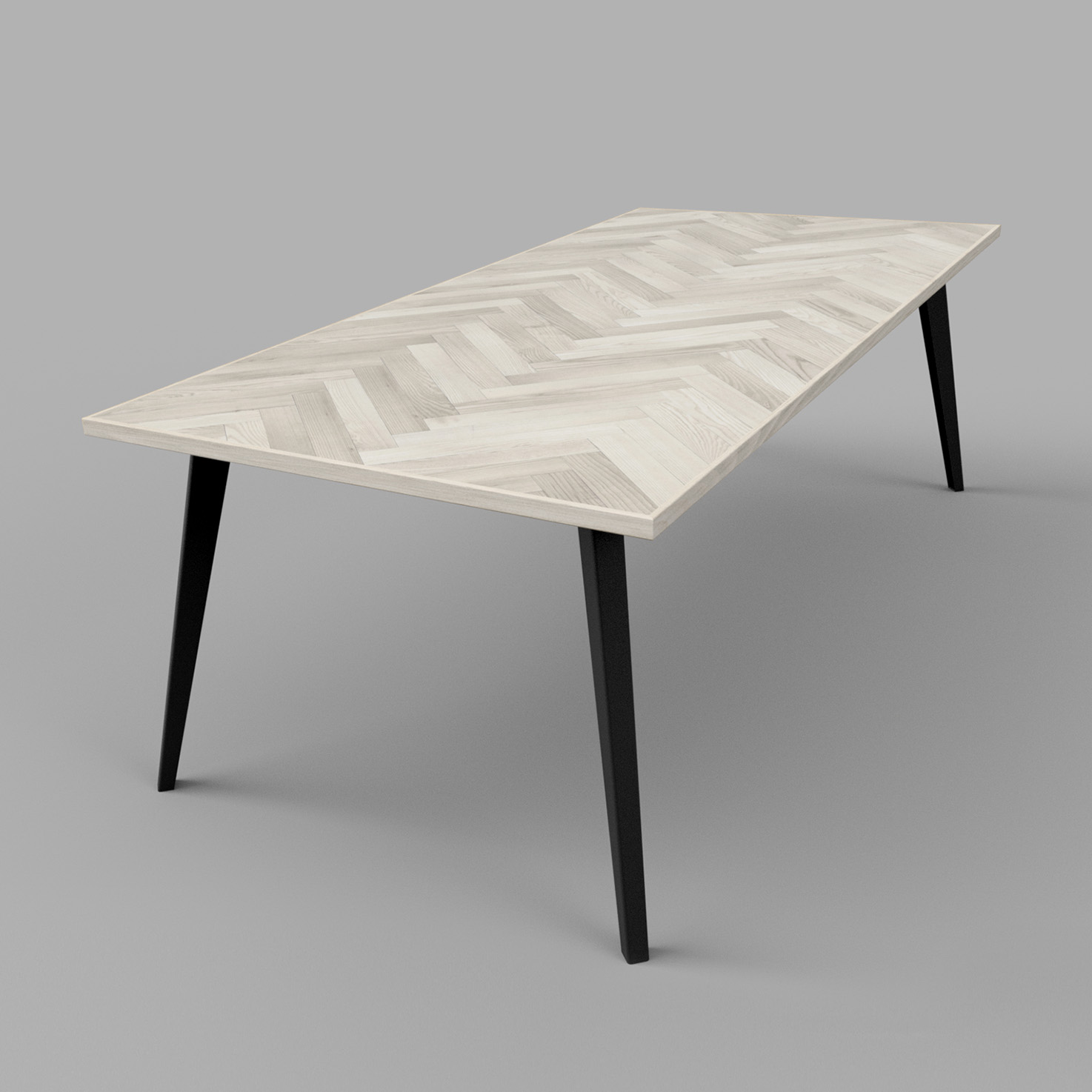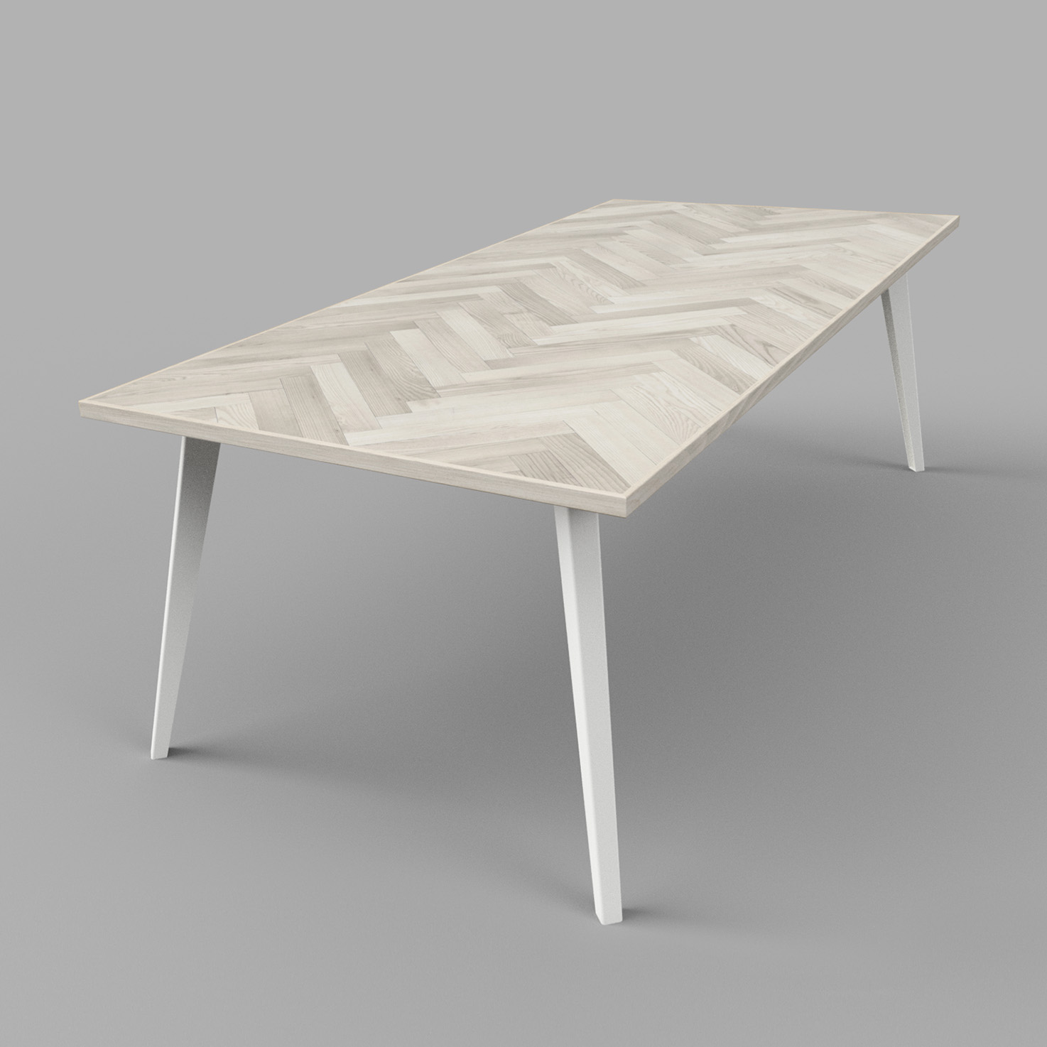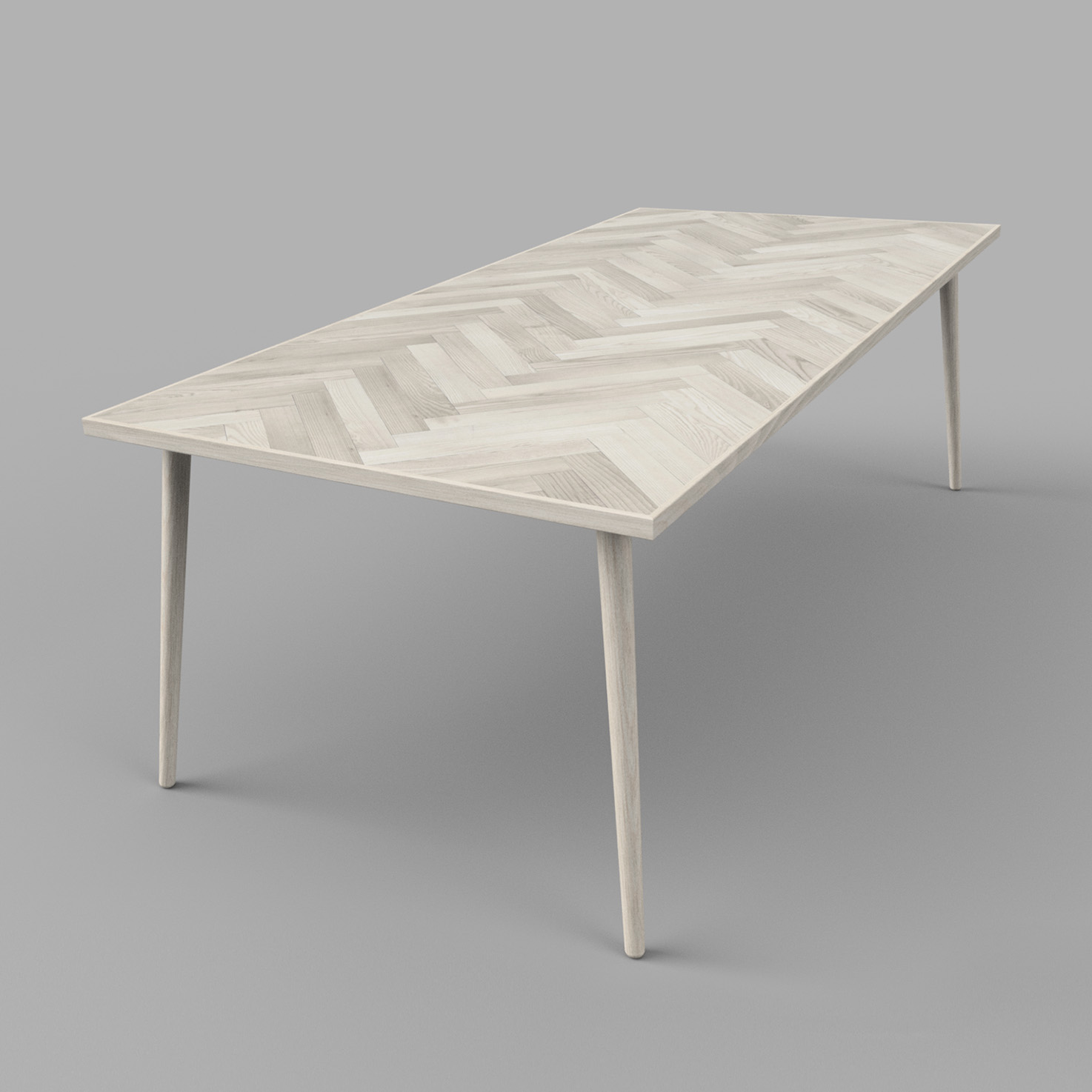 Det klassiske sildebensmønster gør bordet utrolig smukt og tidløst.