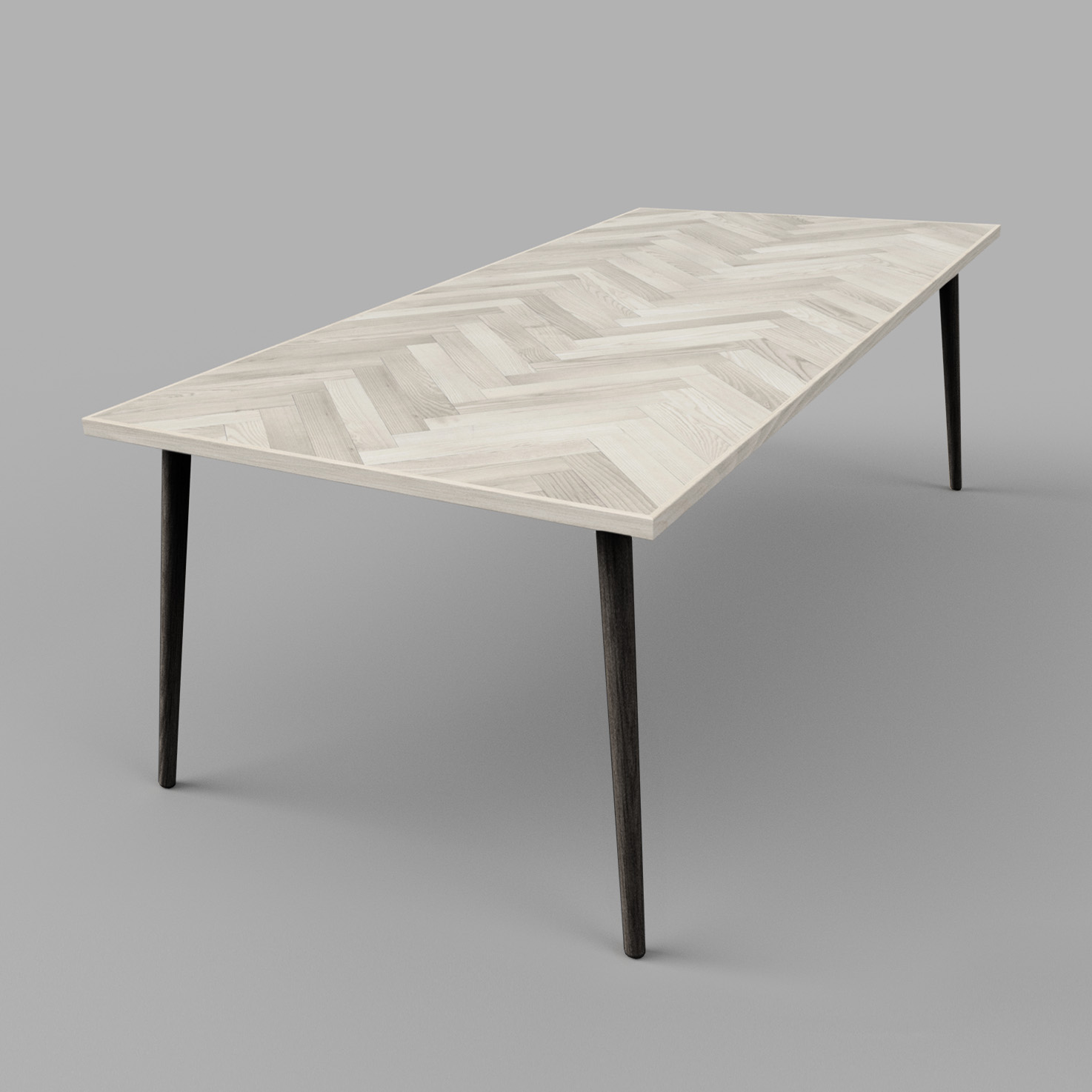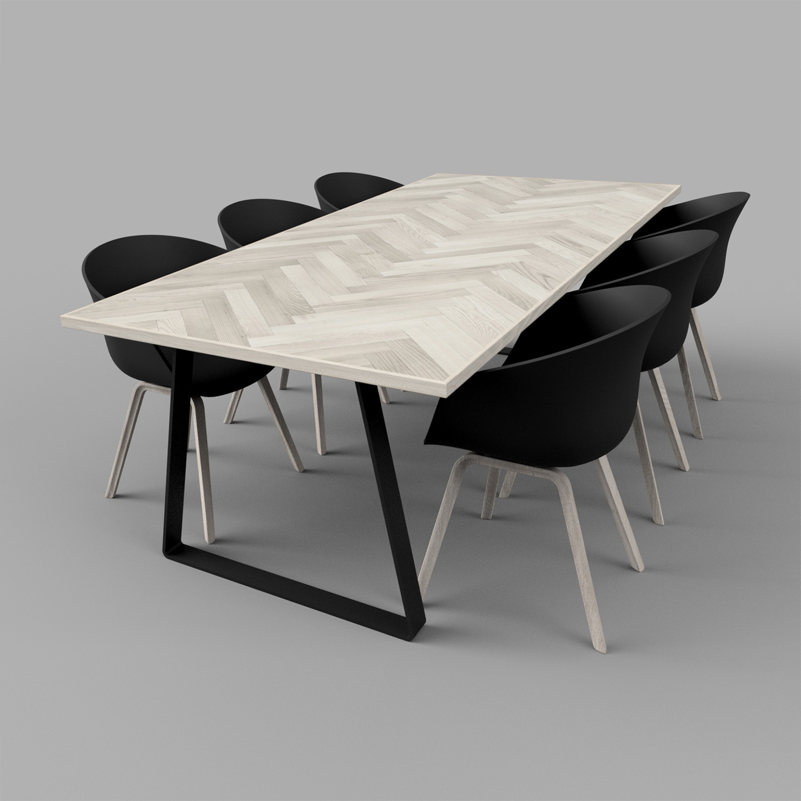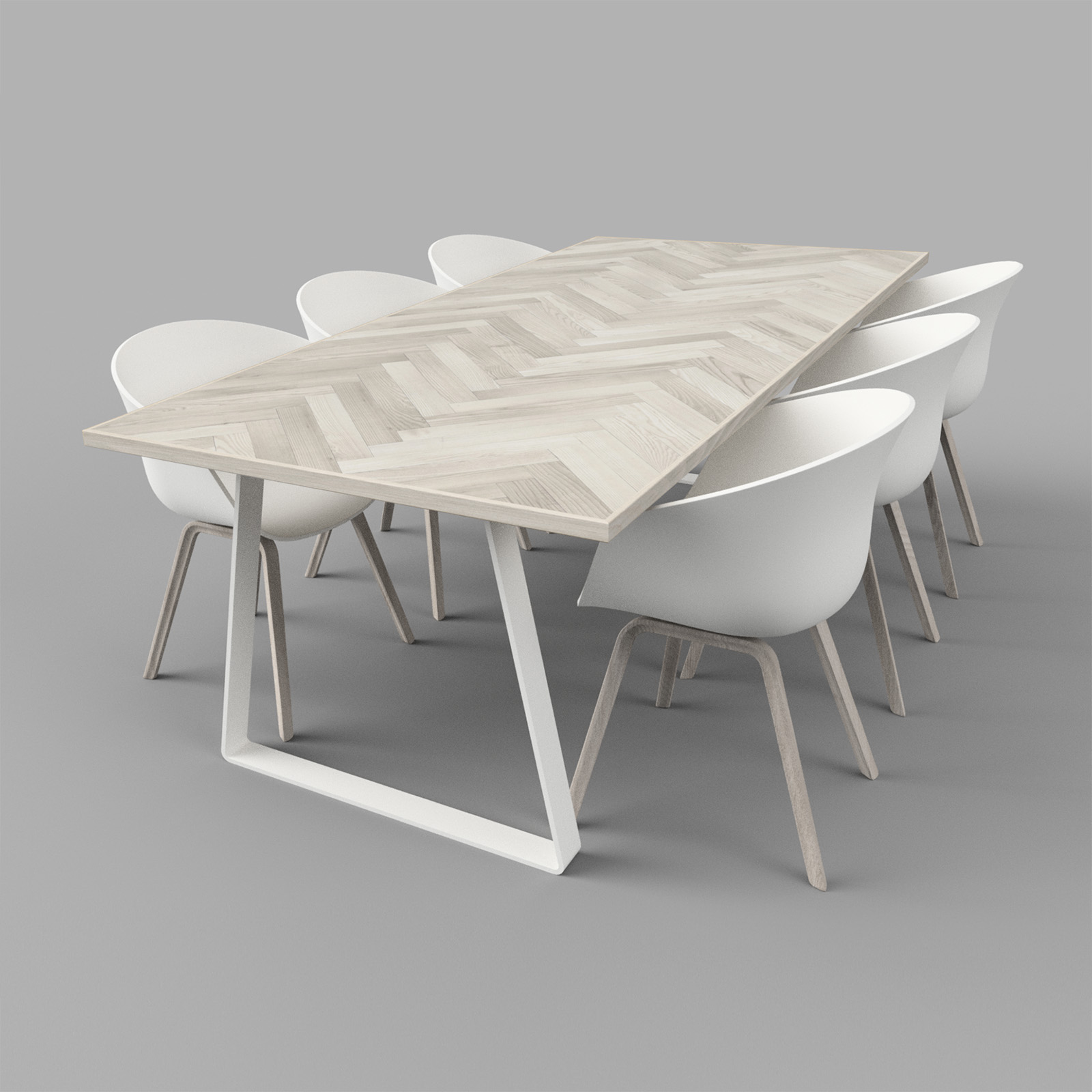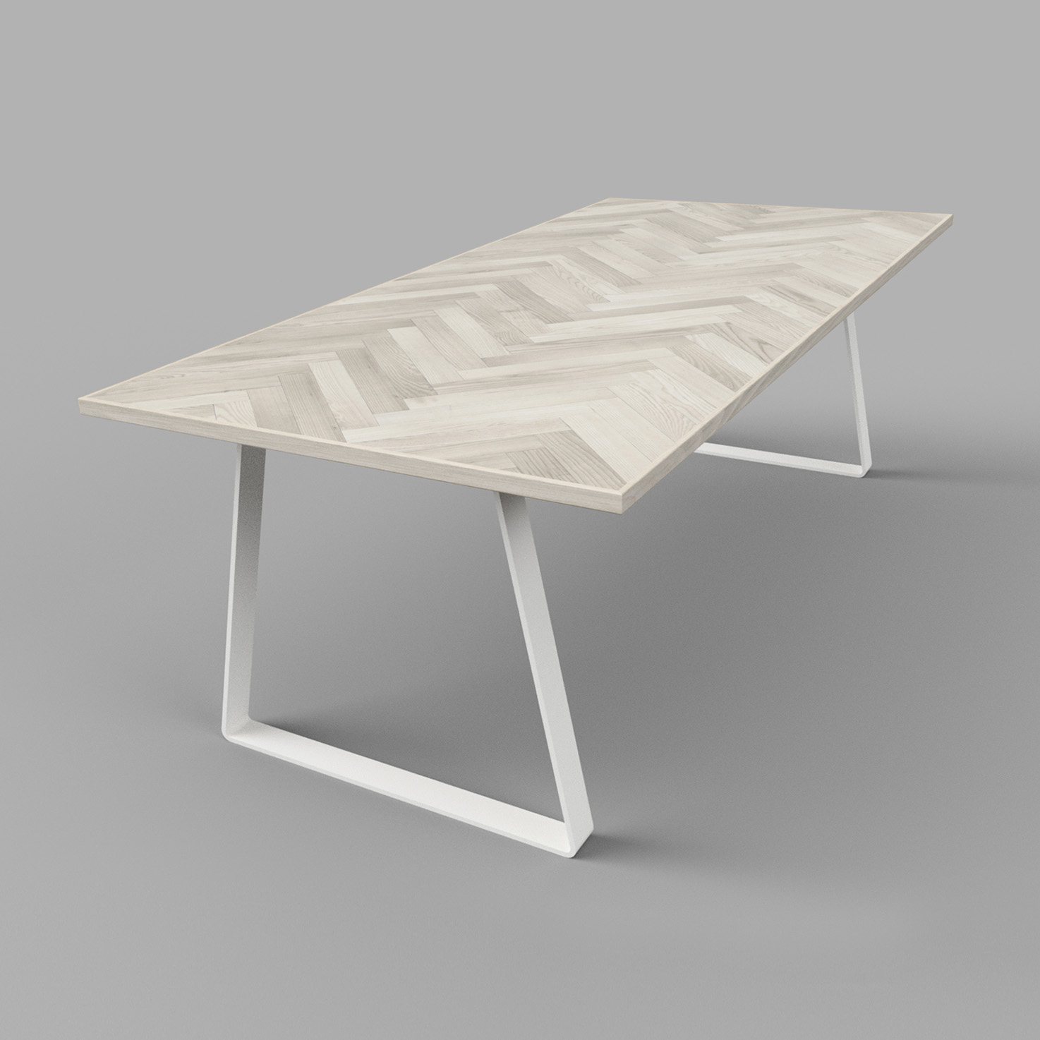Det klassiske sildebensmønster gør bordet utrolig smukt og tidløst.