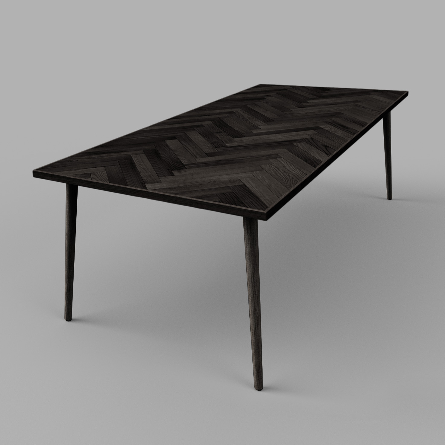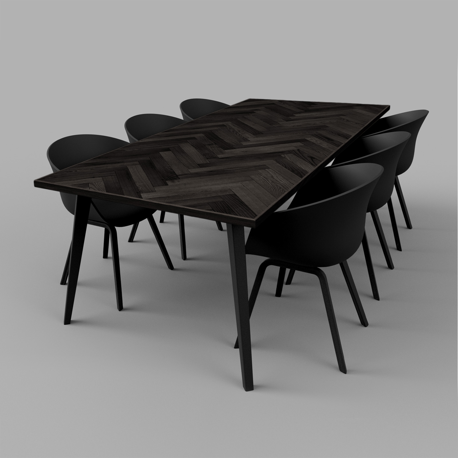 Det klassiske sildebensmønster gør bordet utrolig smukt og tidløst.