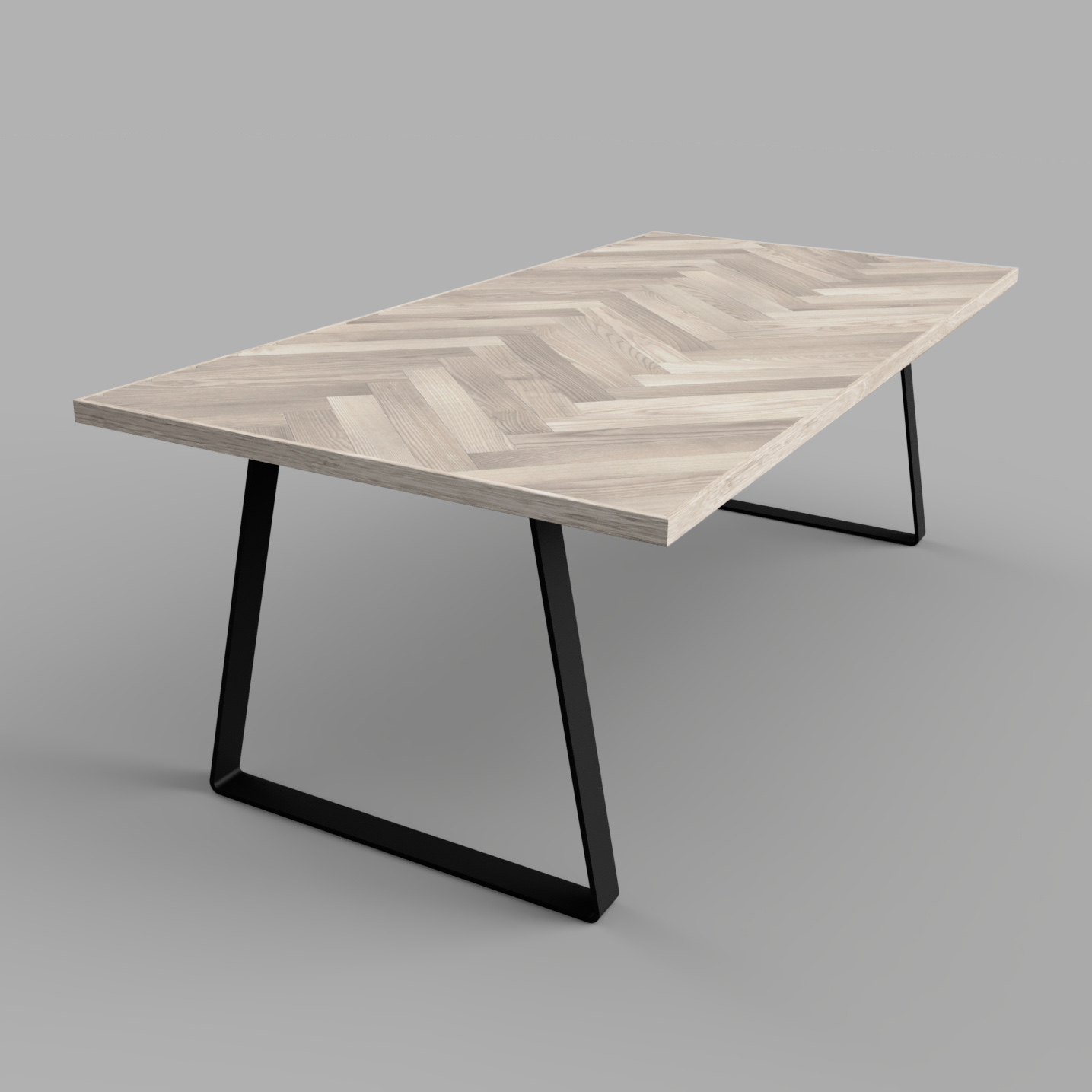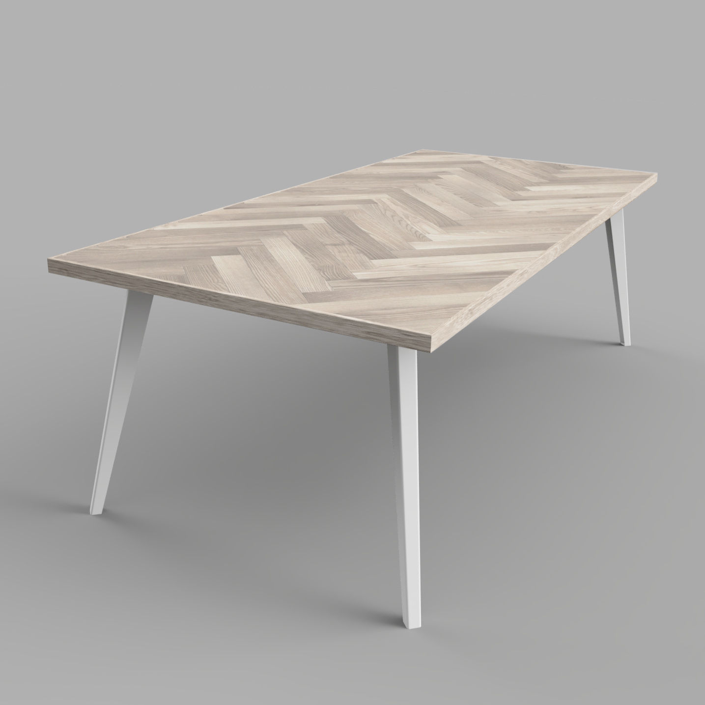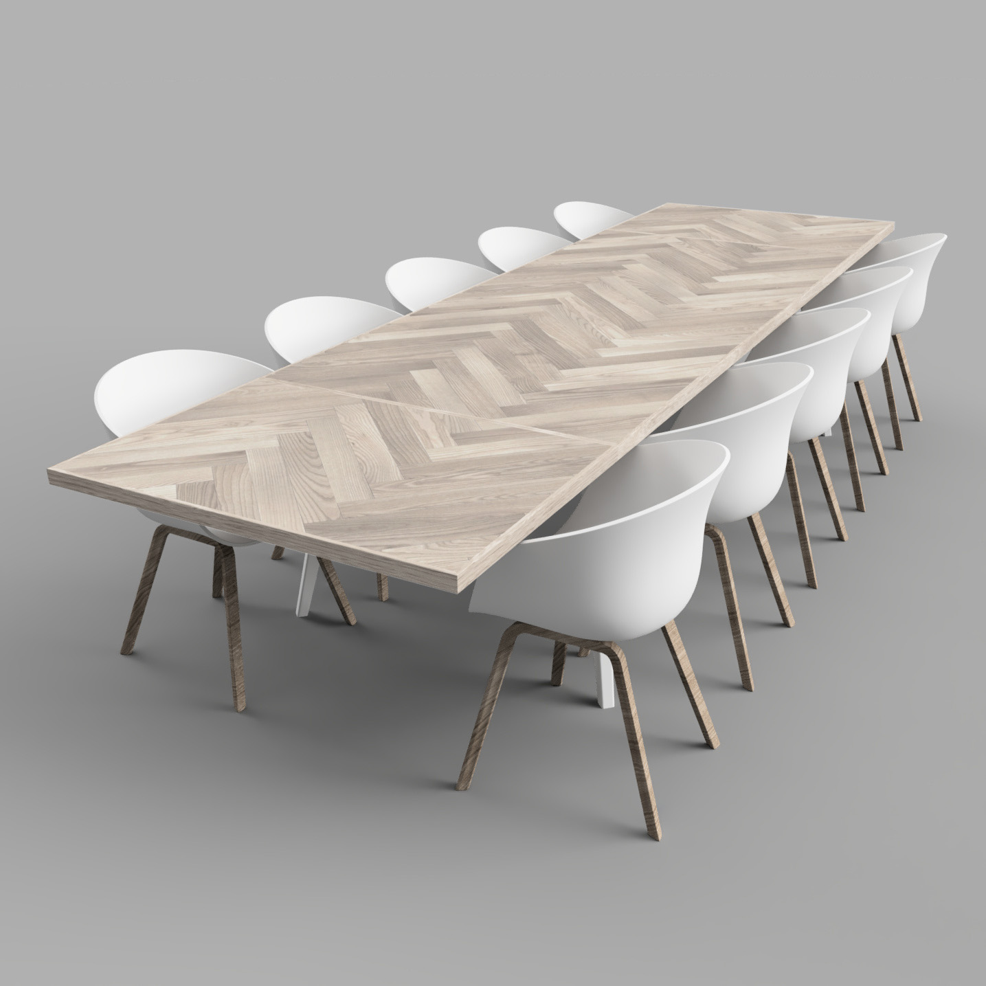 Det klassiske sildebensmønster gør bordet utrolig smukt og tidløst.