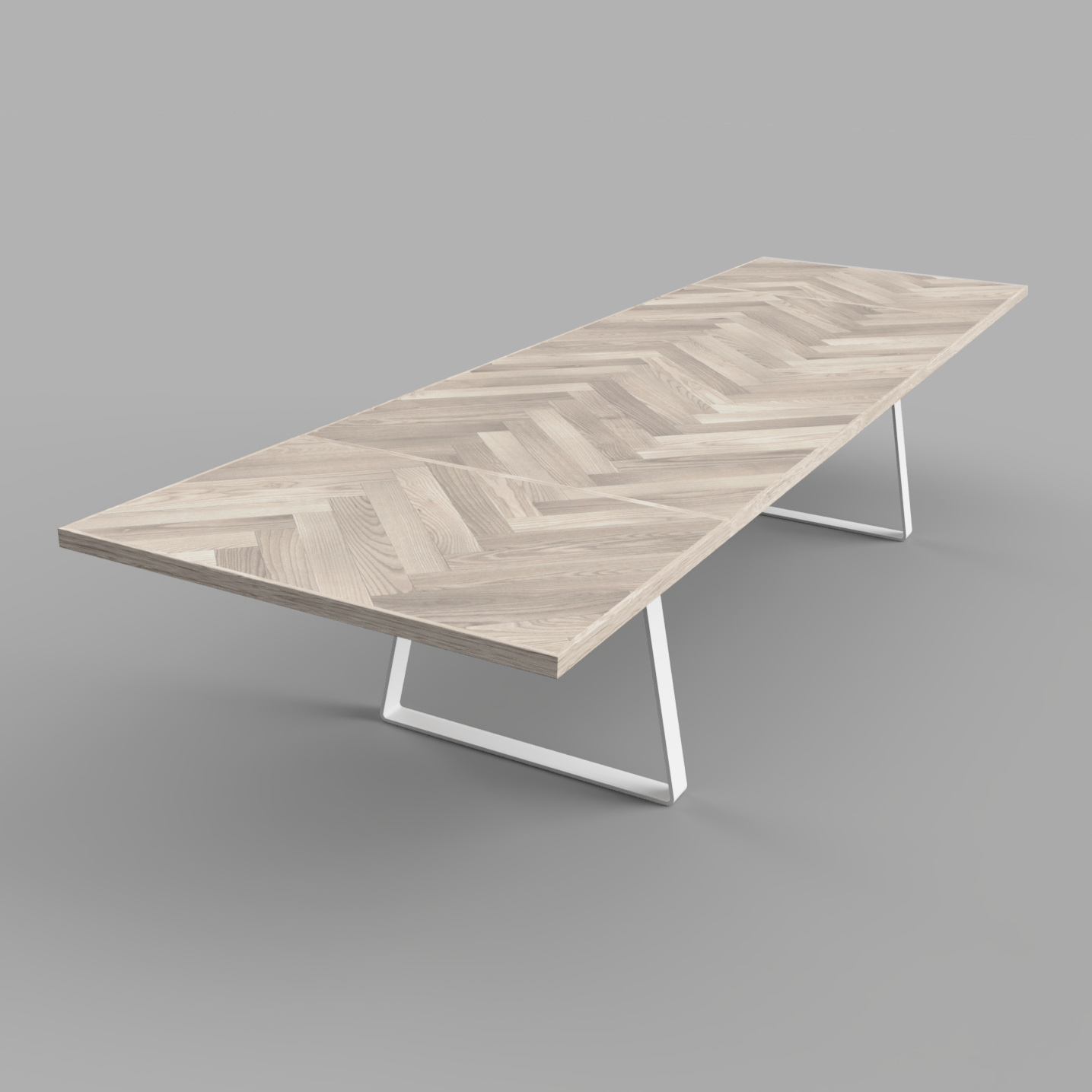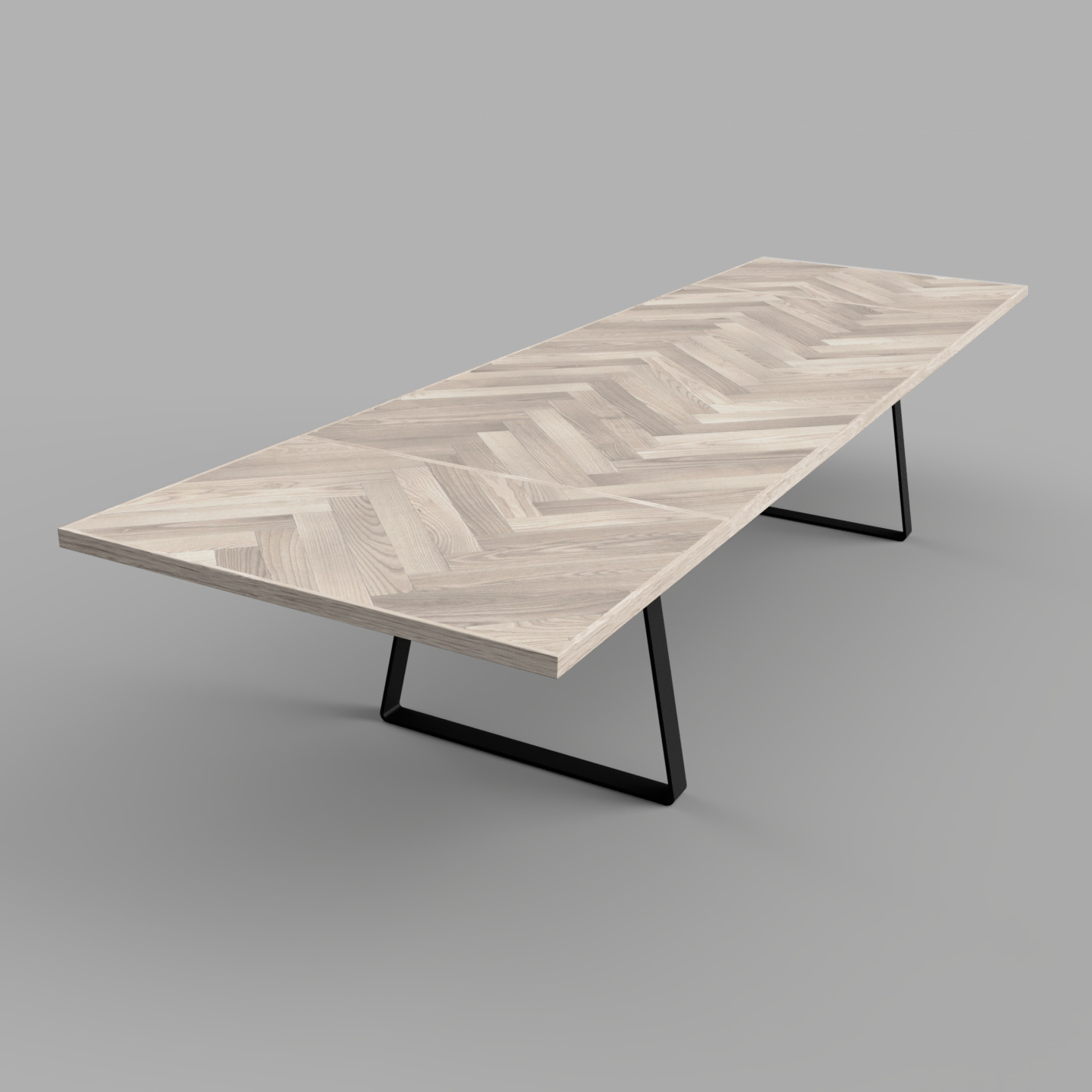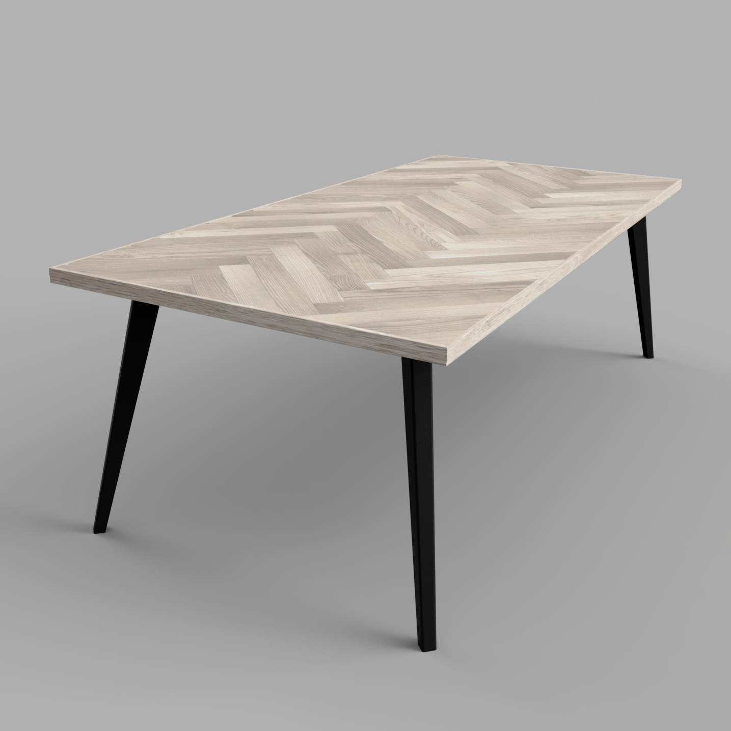 Det klassiske sildebensmønster gør bordet utrolig smukt og tidløst.