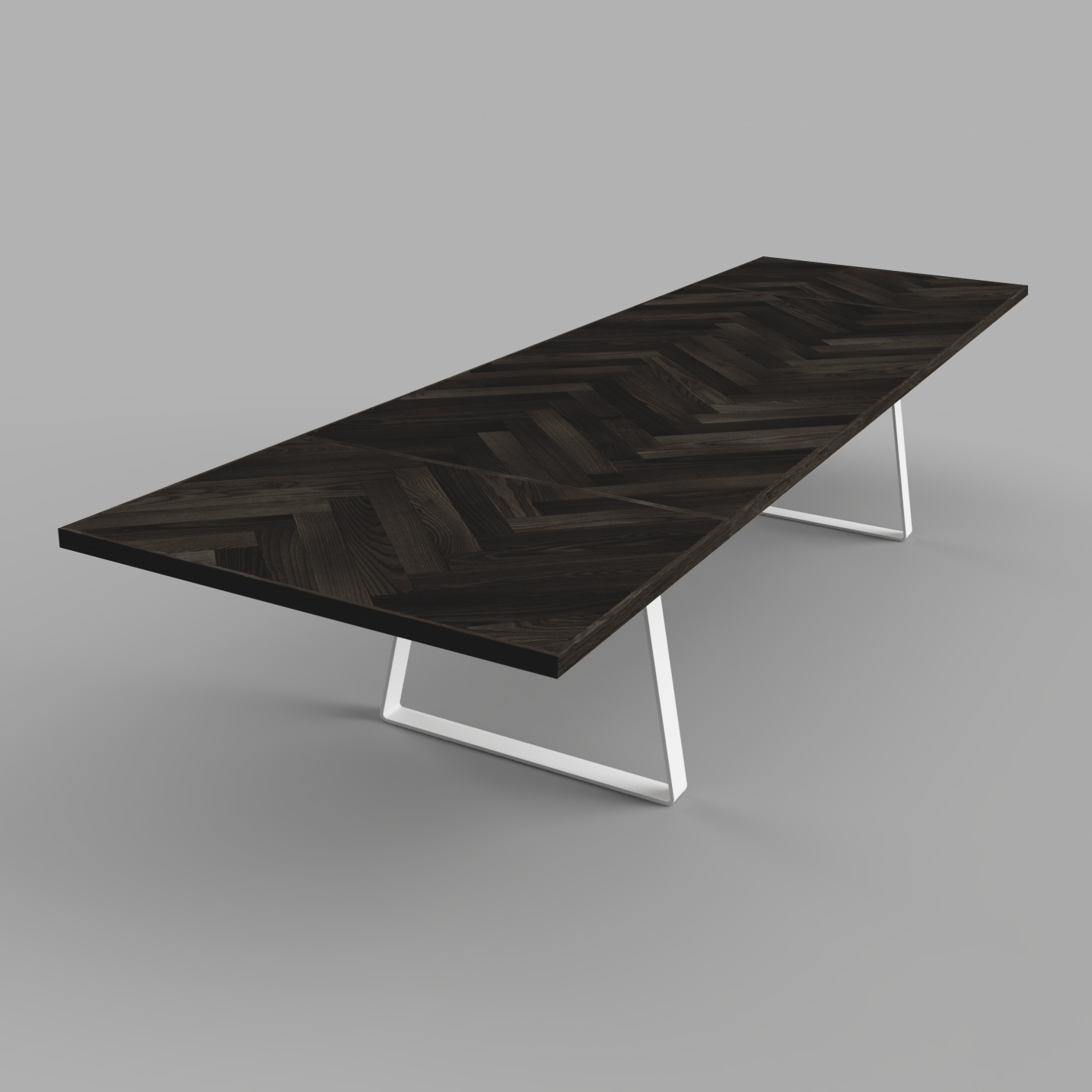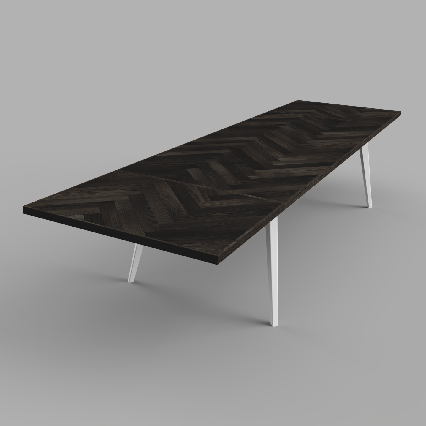 Det klassiske sildebensmønster gør bordet utrolig smukt og tidløst.