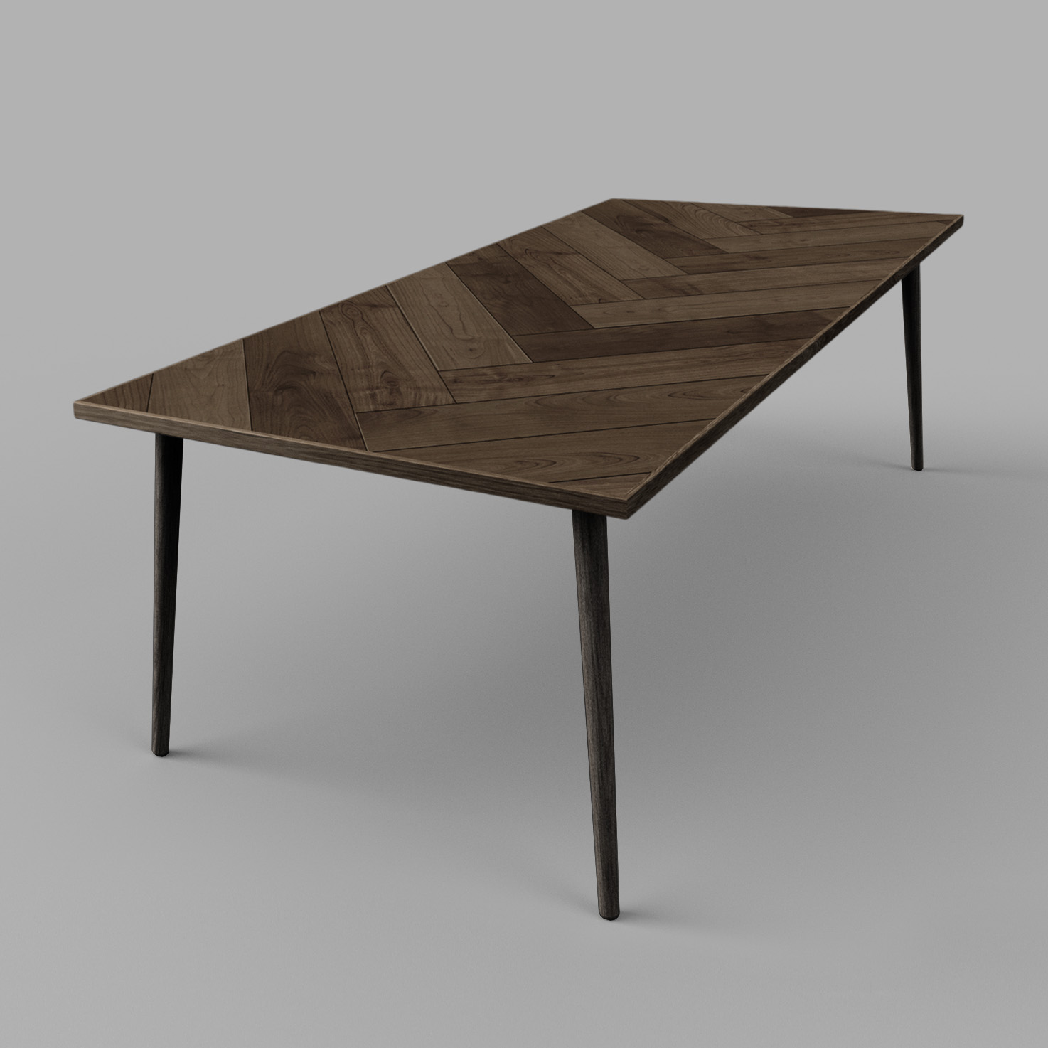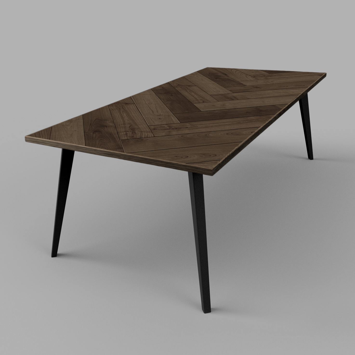 Det klassiske sildebensmønster gør bordet utrolig smukt og tidløst.